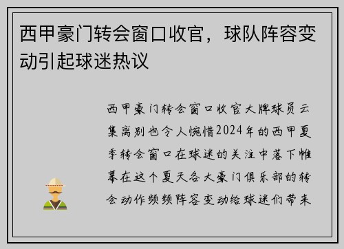 西甲豪门转会窗口收官,球队阵容变动引起球迷热议